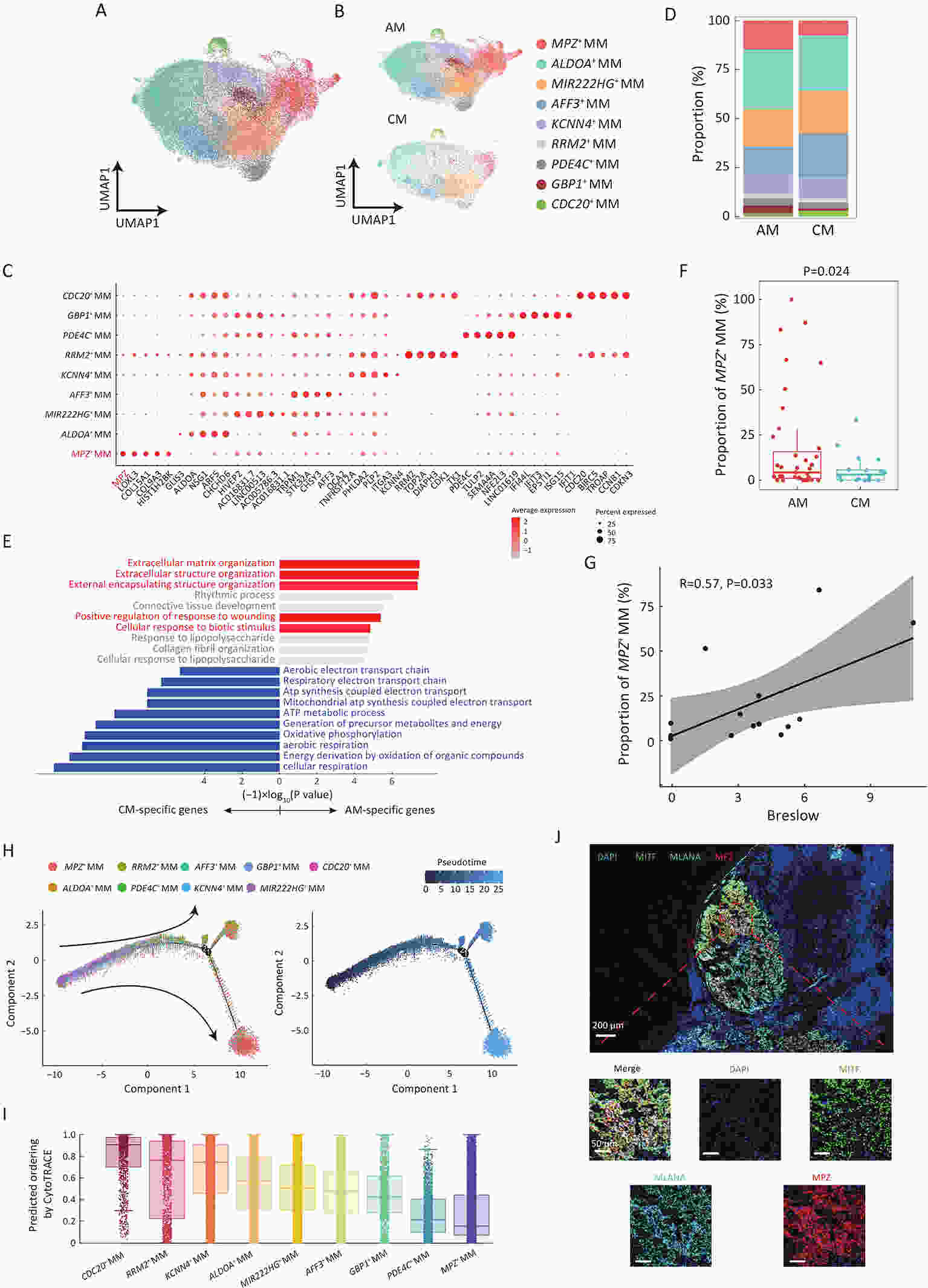 ObjectiveAcral melanoma (AM), a unique subtype prevalent in China, develops on the palms, soles, and nail beds. Despite its distinct clinical and pathological features compared to cutaneous melanoma (CM), the molecular basis underlying these differences remains poorly understood. This study aims to perform a comprehensive comparative transcriptomic analysis of AM and CM at the single-cell level to uncover key molecular distinctions. MethodsWe analyzed single-cell RNA sequencing (scRNA-seq) data from 39 AM patients and 18 CM cases. Single-cell transcriptomic profiling was used to compare tumor cell subpopulations and microenvironmental differences. Bioinformatics tools were employed for cell clustering, differential gene expression analysis, cell-cell communication network inferences, and survival analysis. ResultsAM exhibited a significantly higher proportion of MPZ+ melanoma cells, a subpopulation with Schwann cell-like properties associated with poor prognosis. These MPZ+ melanoma cells established extensive communication networks with AM-specific immune and stromal components, prompting an immunosuppressive microenvironment and enhancing angiogenic potential. Survival analysis further indicated that the presence of MPZ+ melanoma cells is closely linked to worse clinical outcomes in AM patients. ConclusionsThis study provides novel insights into the molecular distinctions between AM and CM, highlighting the critical role of MPZ+ melanoma cells in AM progression. These findings enhance our understanding of AM pathophysiology and may contribute to the development of more targeted therapeutic strategies.