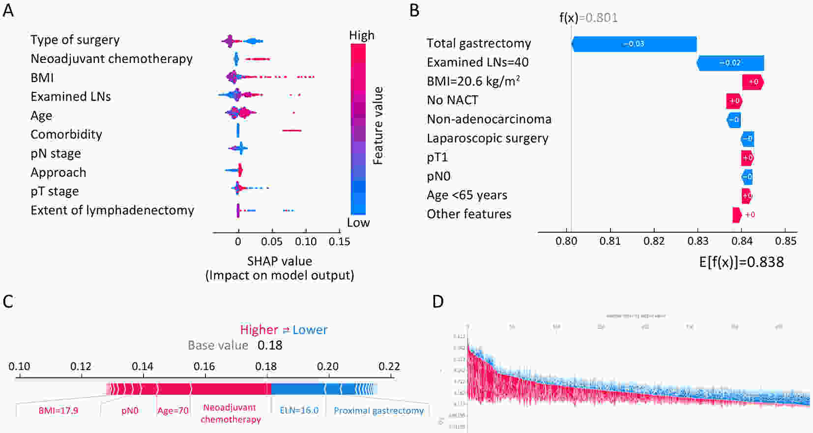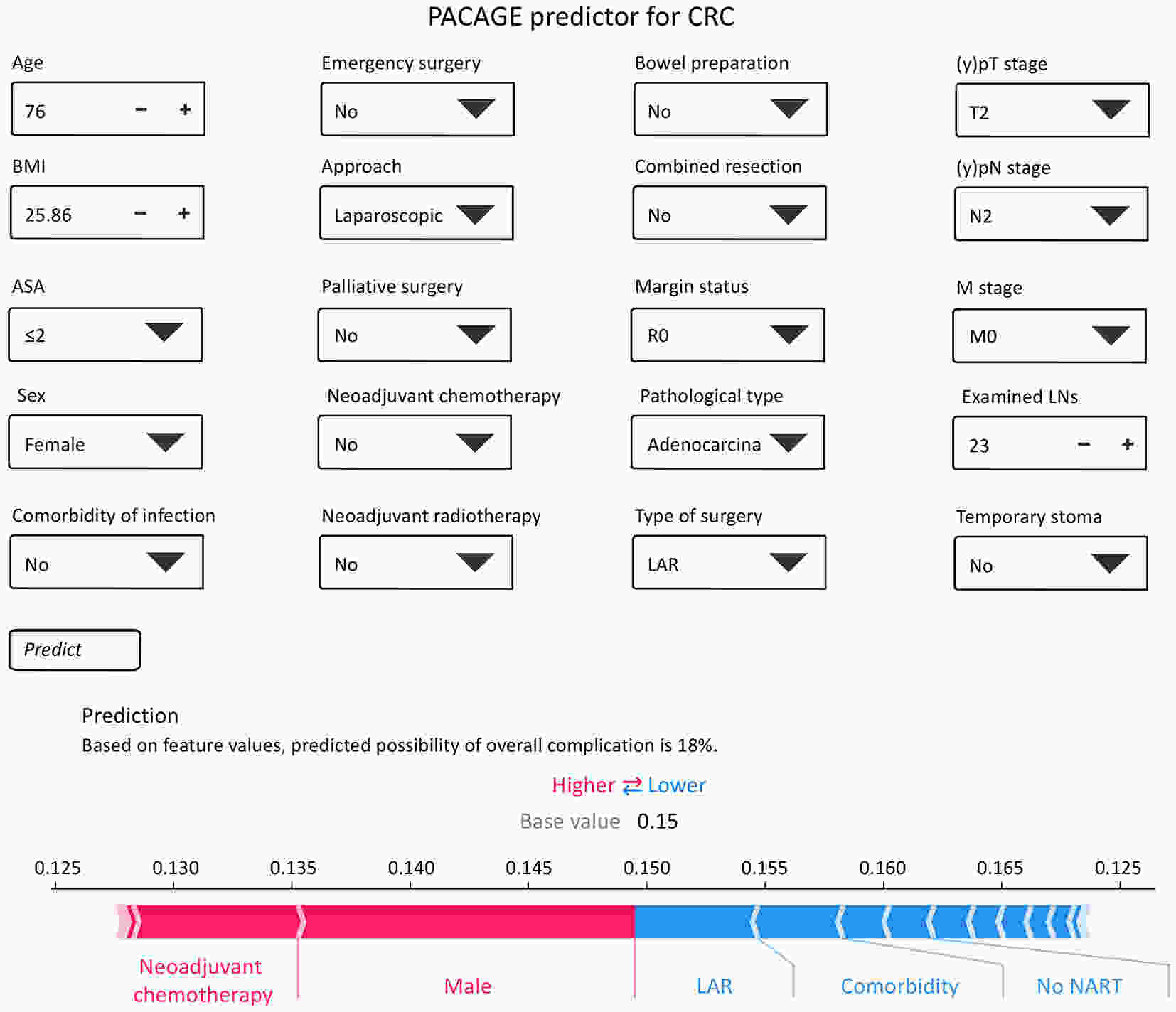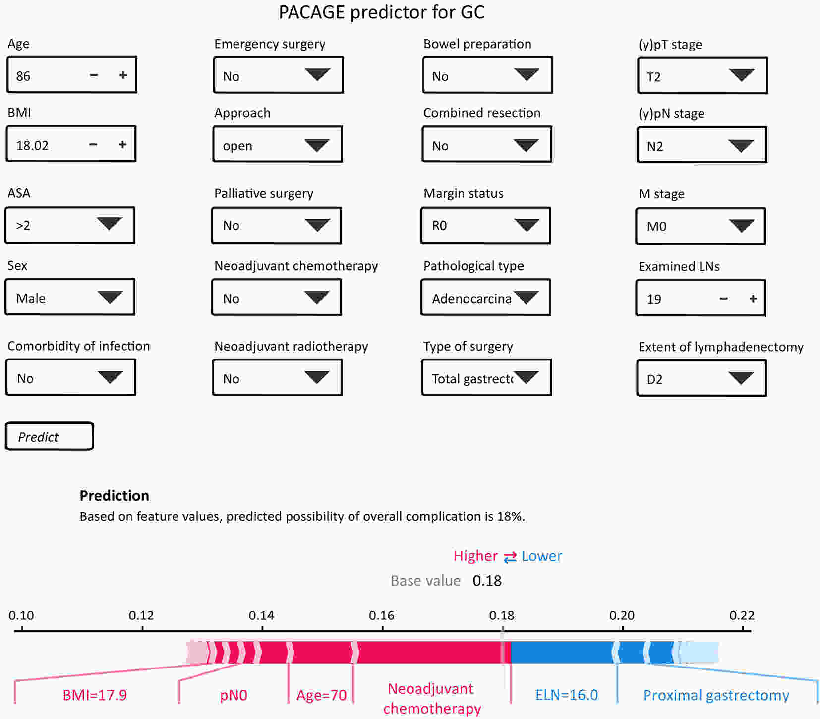 ObjectiveThis study aimed to develop and validate a predictive model for postoperative complications in gastrointestinal cancer patients using a large multicenter database, based on machine learning algorithms. MethodsWe analyzed the clinicopathological data of 3,926 gastrointestinal cancer patients from the Prevalence of Abdominal Complications After GastroEnterological surgery (PACAGE) database, covering 20 medical centers from December 2018 to December 2020. The predictive performance was evaluated using receiver operating characteristic (ROC) curves and Brier Score. ResultsThe patients were divided into gastric (2,271 cases) and colorectal cancer (1,655 cases) groups and further divided into training and external validation sets. The overall postoperative complication rates for gastric and colorectal cancer groups were 18.1% and 14.8%, respectively. The most common complication was the intra-abdominal infection in both gastric and colorectal cancer groups. In the training set, the Random Forest (RF) model predicted the highest mean area under the curve (AUC) values for overall complications and different types of complications, in both the gastric cancer group and the colorectal cancer group, with similar results obtained in the external validation set. ROC curve analysis showed good predictive performance of the RF model for overall and infectious complications. An application-based clinical tool was developed for easy application in clinical practice. ConclusionsThis model demonstrated good predictive performance for overall and infectious complications based on the multi-center database, supporting clinical decision-making and personalized treatment strategies.